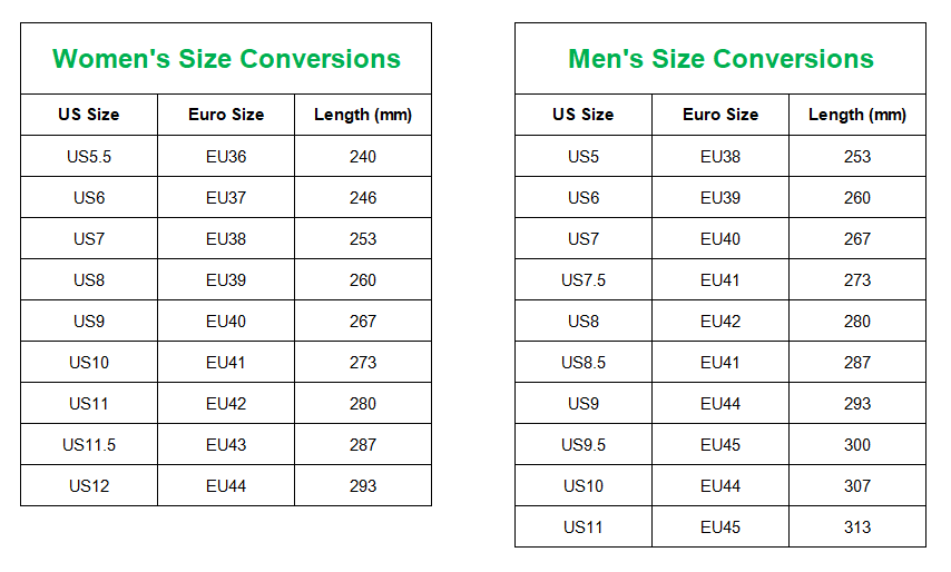 | Size | 5, 5.5, 6, 6.5, 7, 7.5, 8, 8.5, 9, 9.5, 10, 10.5, 11, 11.5, 12, 12.5, 13, 13.5, 14 |