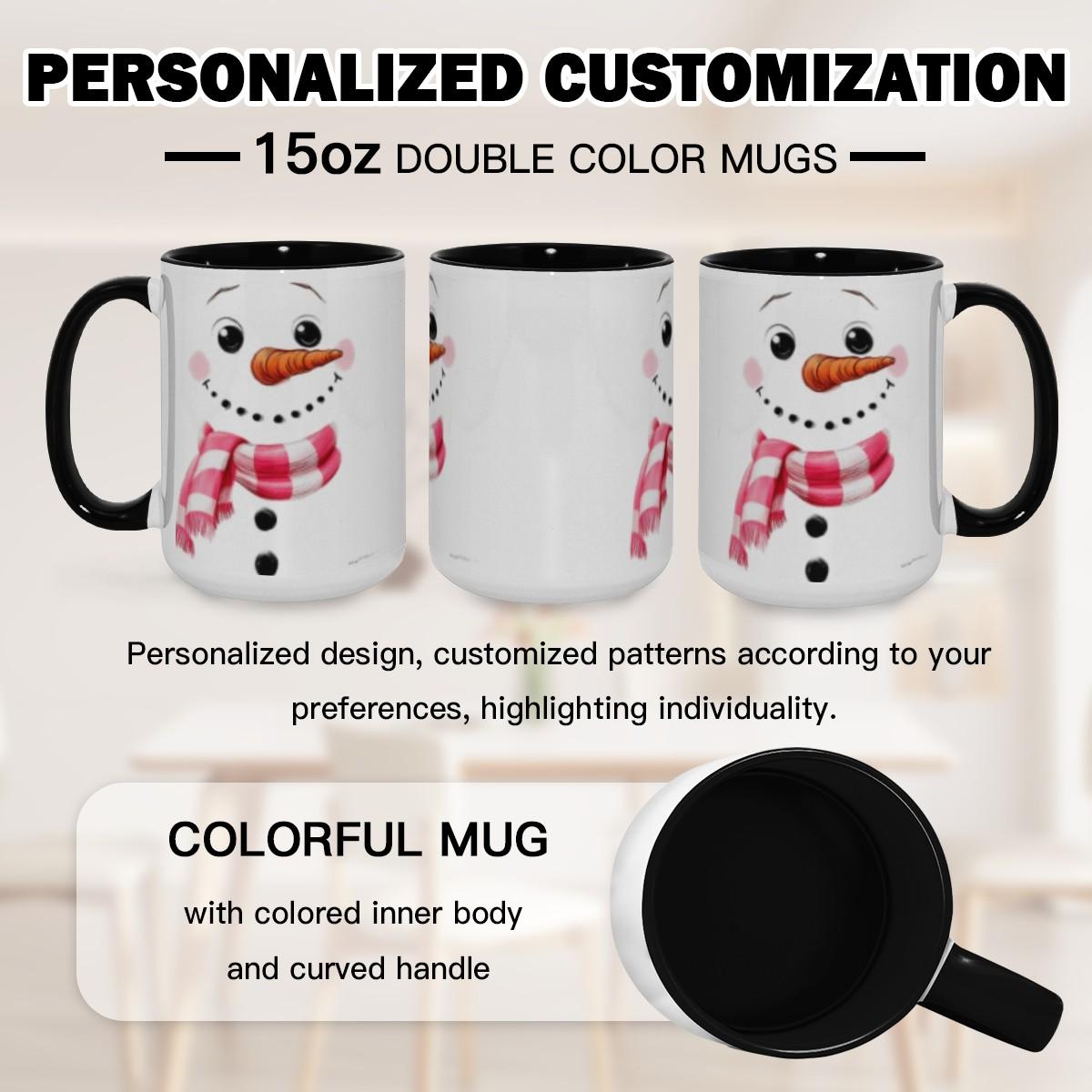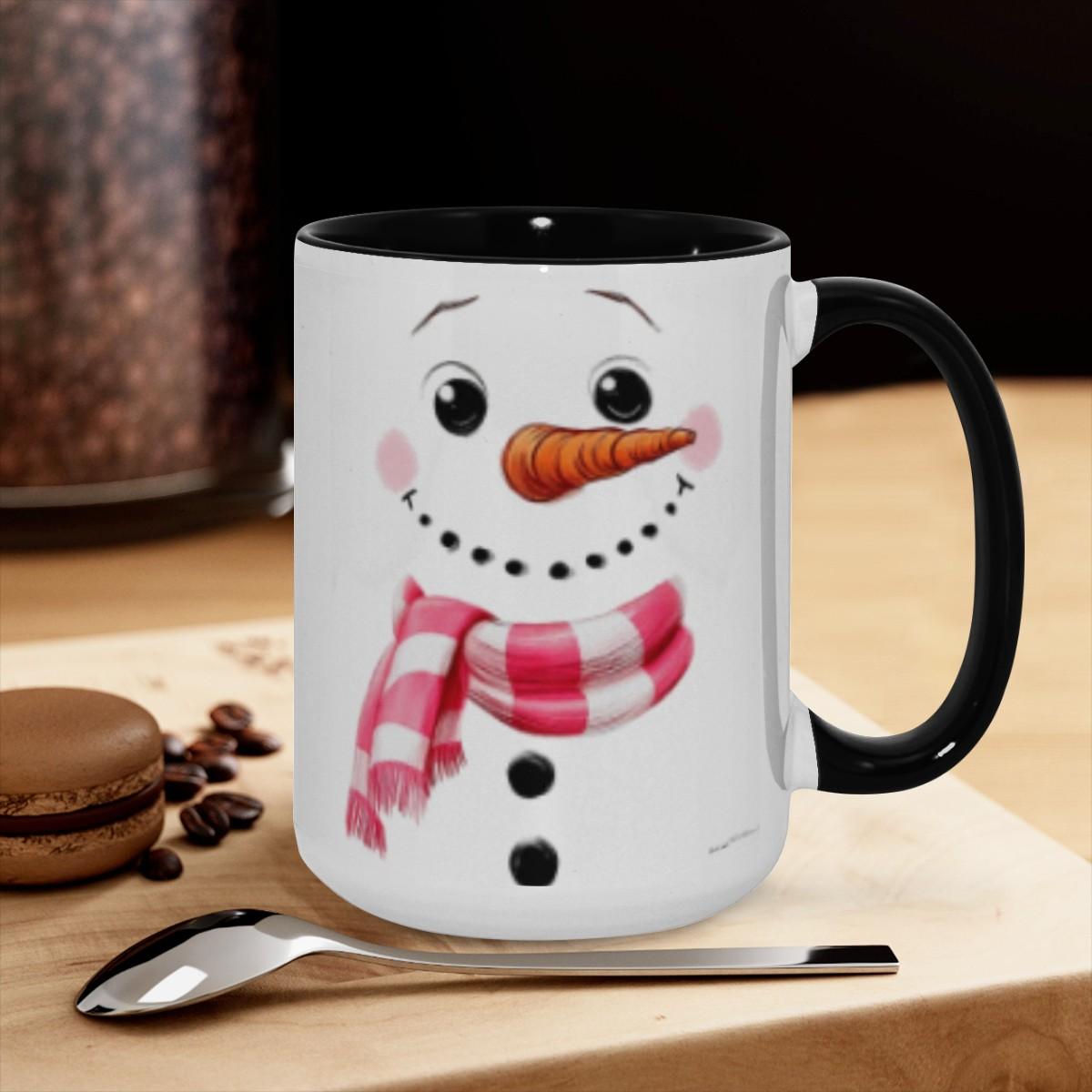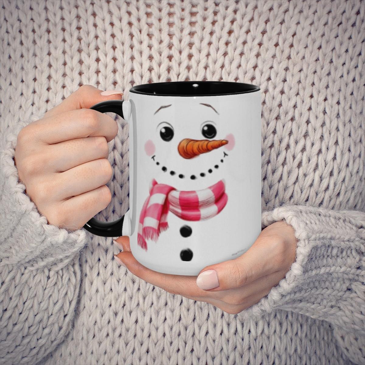 Christmas Snowman Mug – Pink Plaid Scarf Ceramic Coffee Cup