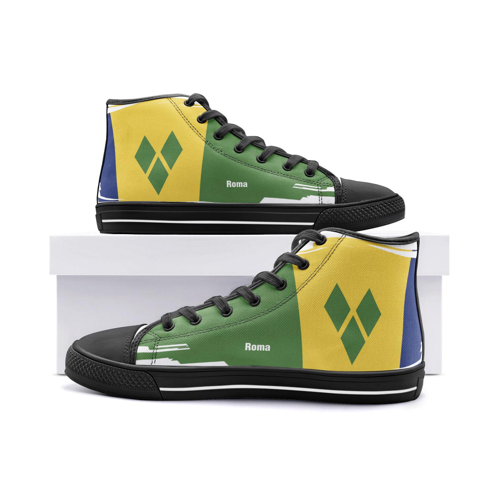Add a bold, modern touch to your everyday style with these geometric color-block high-top canvas sneakers. Designed with a striking mix of green, yellow, and blue panels, plus sharp diamond-shaped graphic elements, these shoes offer a unique and stylish look for both men and women.