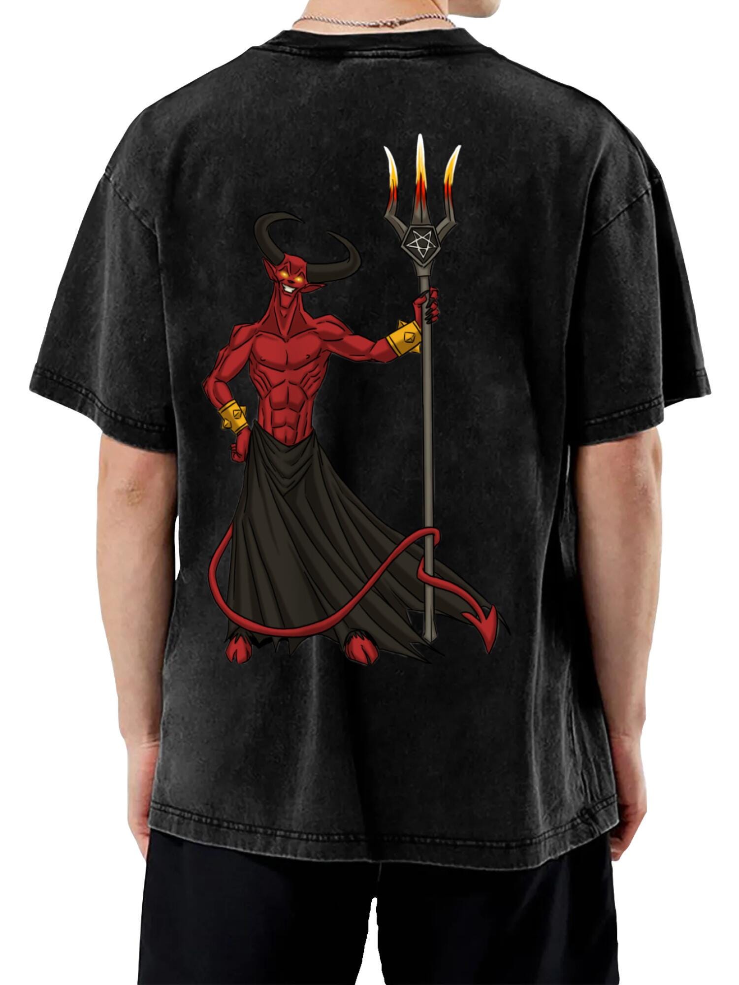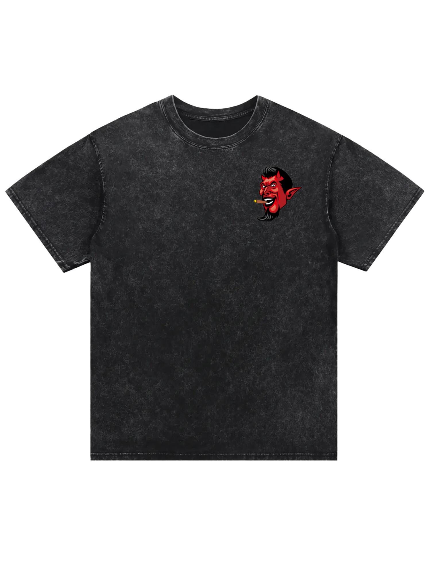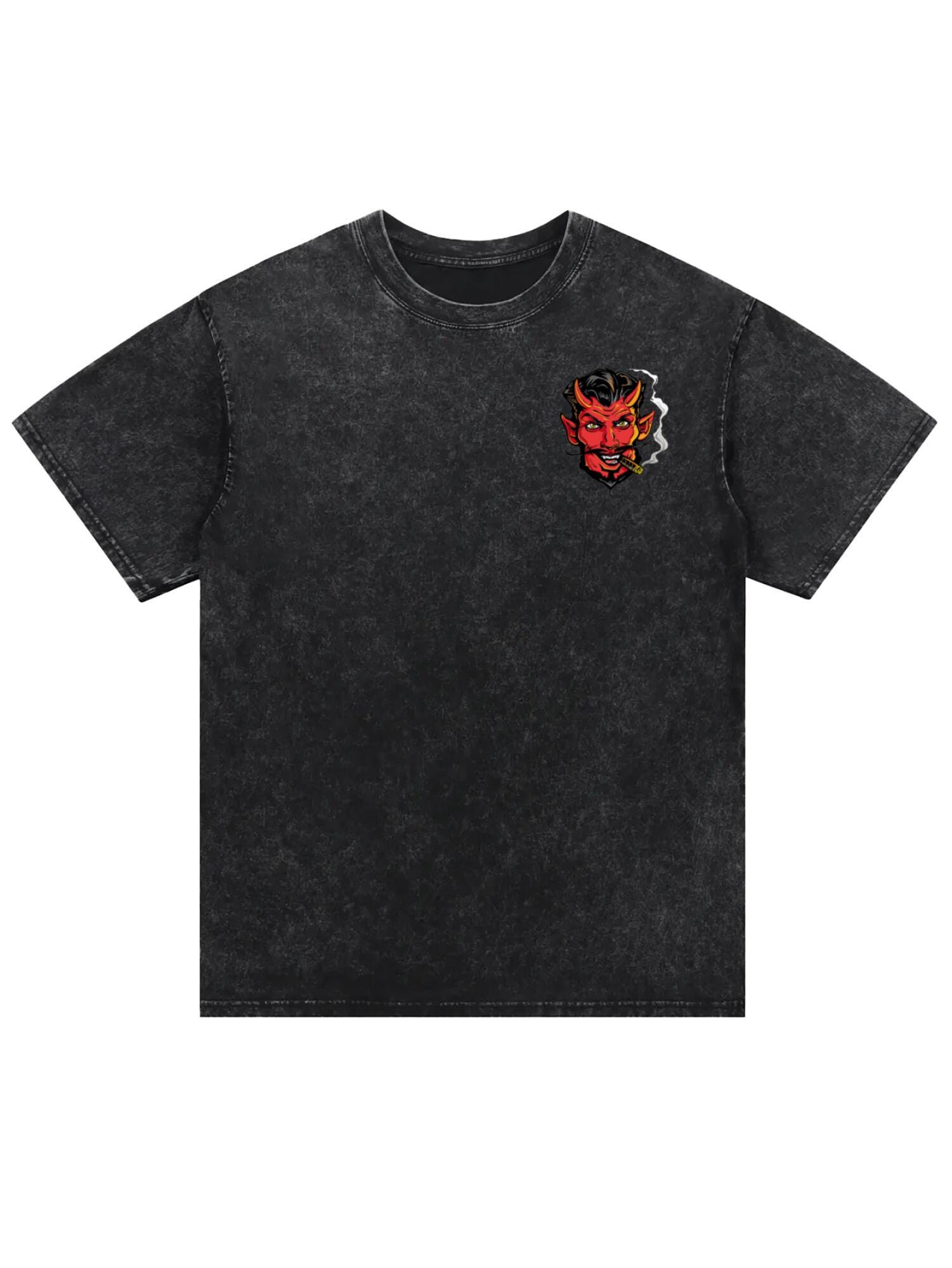 Demon Smoking Vintage T-Shirt | 200g Washed Cotton Tee