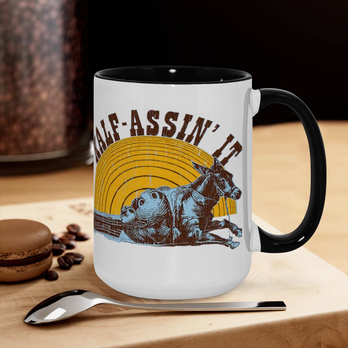 Half-Assin’ It Mug – Retro Donkey Meme Coffee Cup