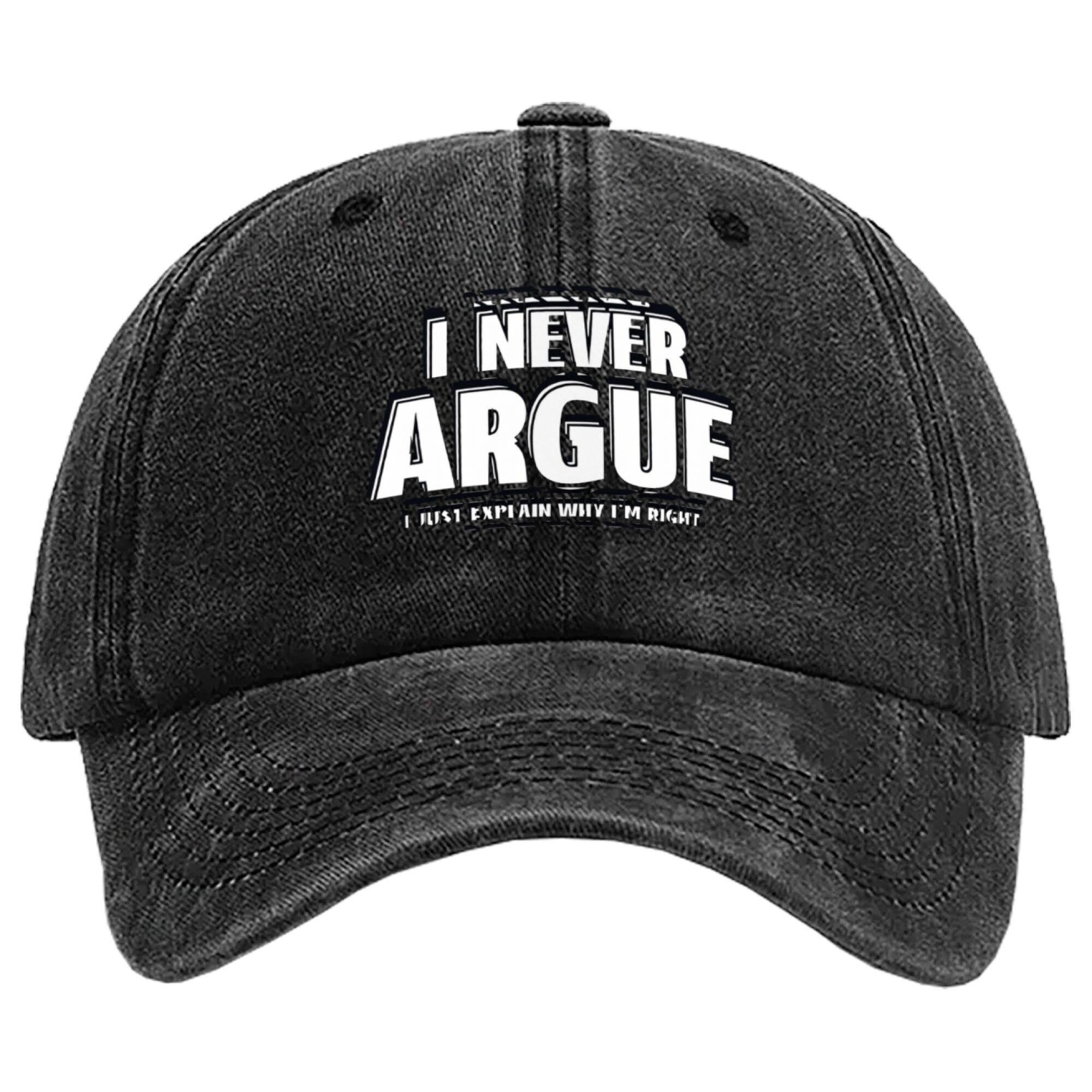 Add humor and confidence to your daily outfit with this “I Never Argue, I Just Explain Why I’m Right” vintage baseball cap. Made from 100% pure cotton (260 g/m²), this hat is soft, breathable, and durable — perfect for all-day wear. The washed black tone gives it a cool retro vibe that pairs effortlessly with casual outfits.