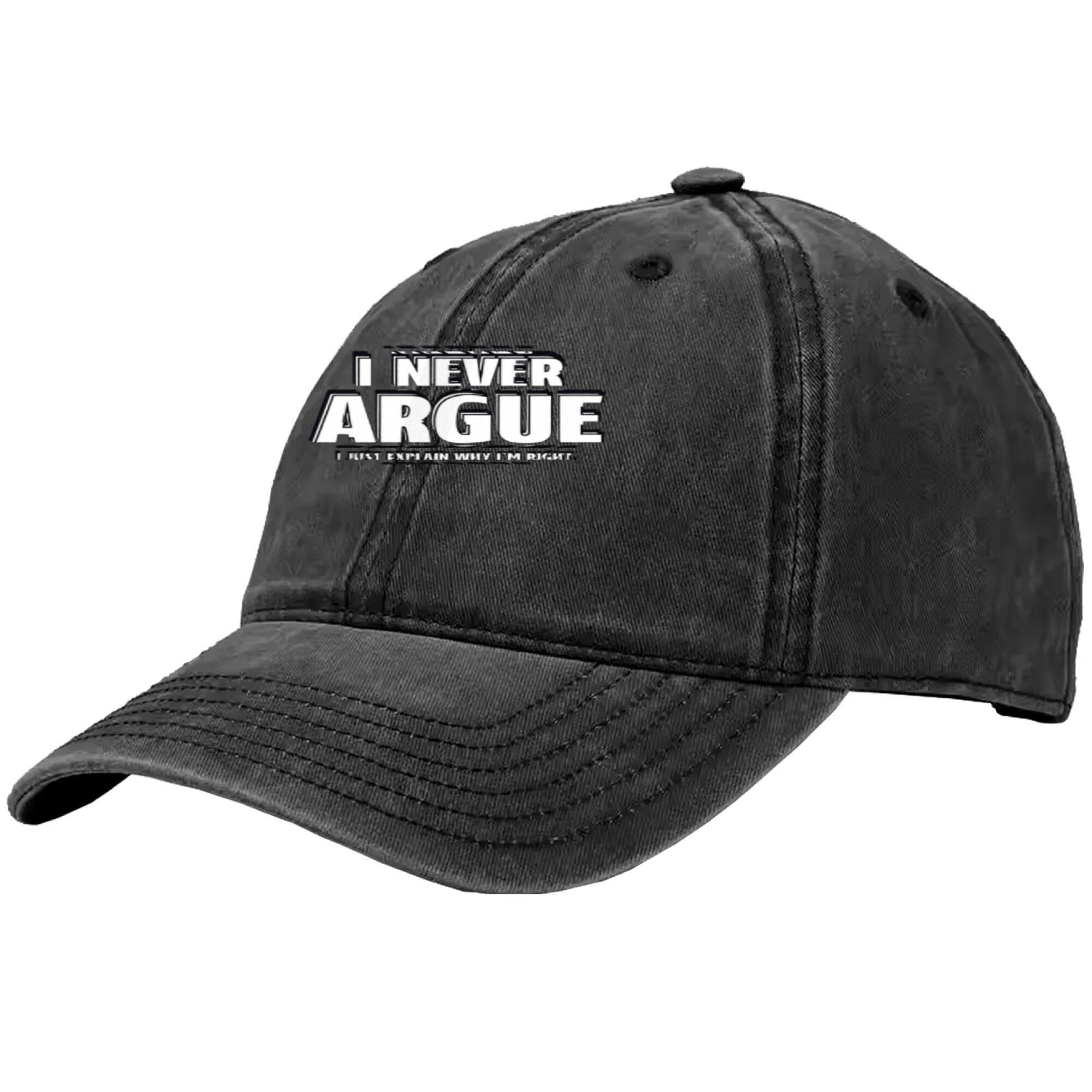 Embroidered funny quote design: “I Never Argue, I Just Explain Why I’m Right”